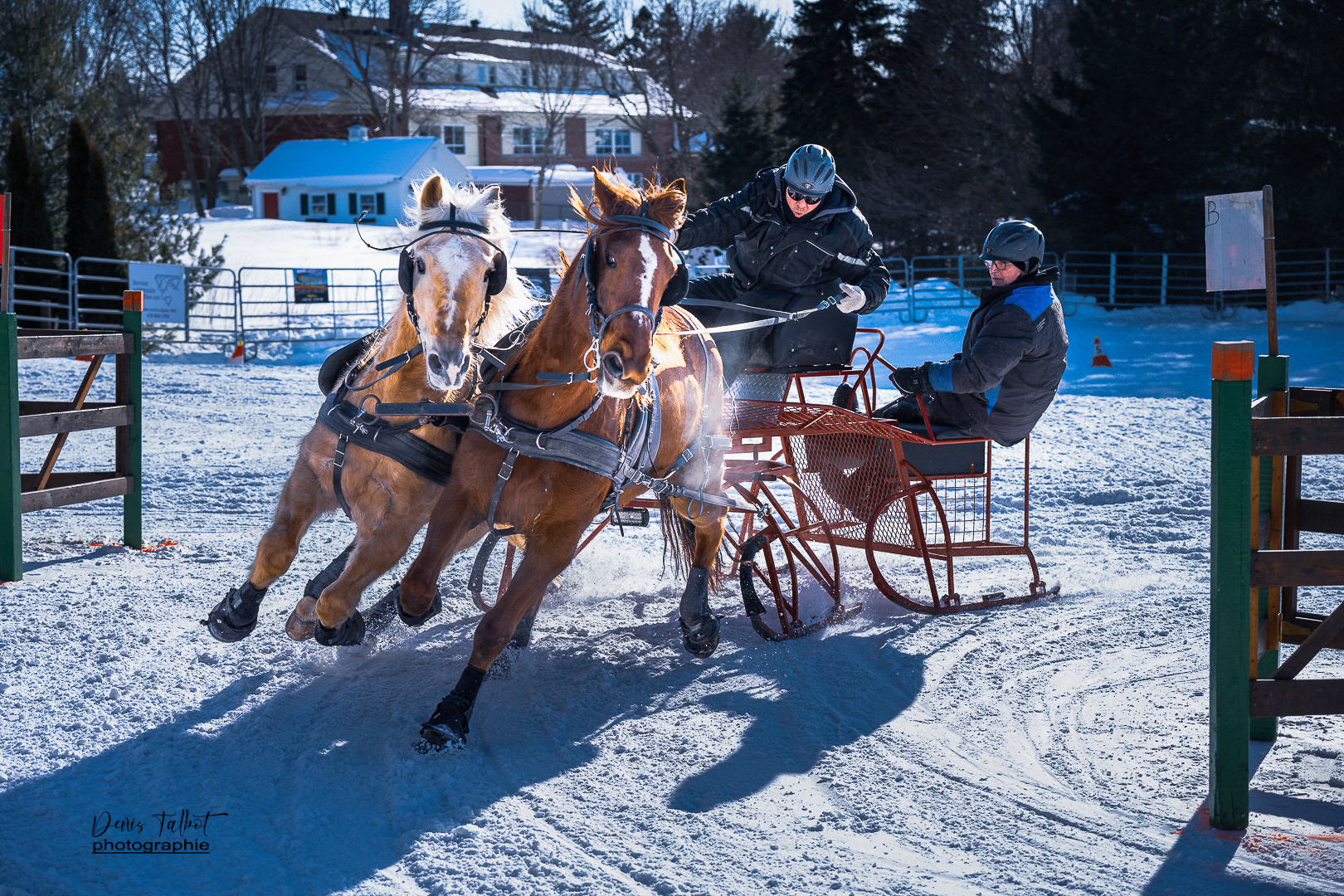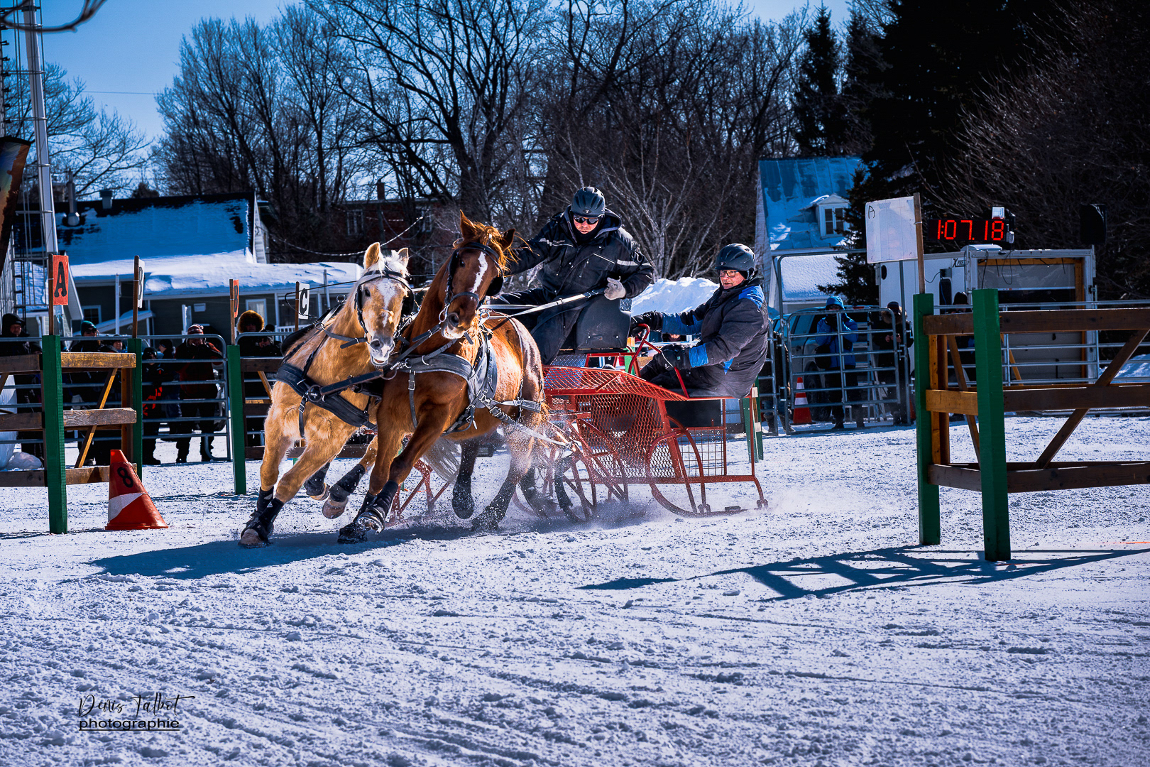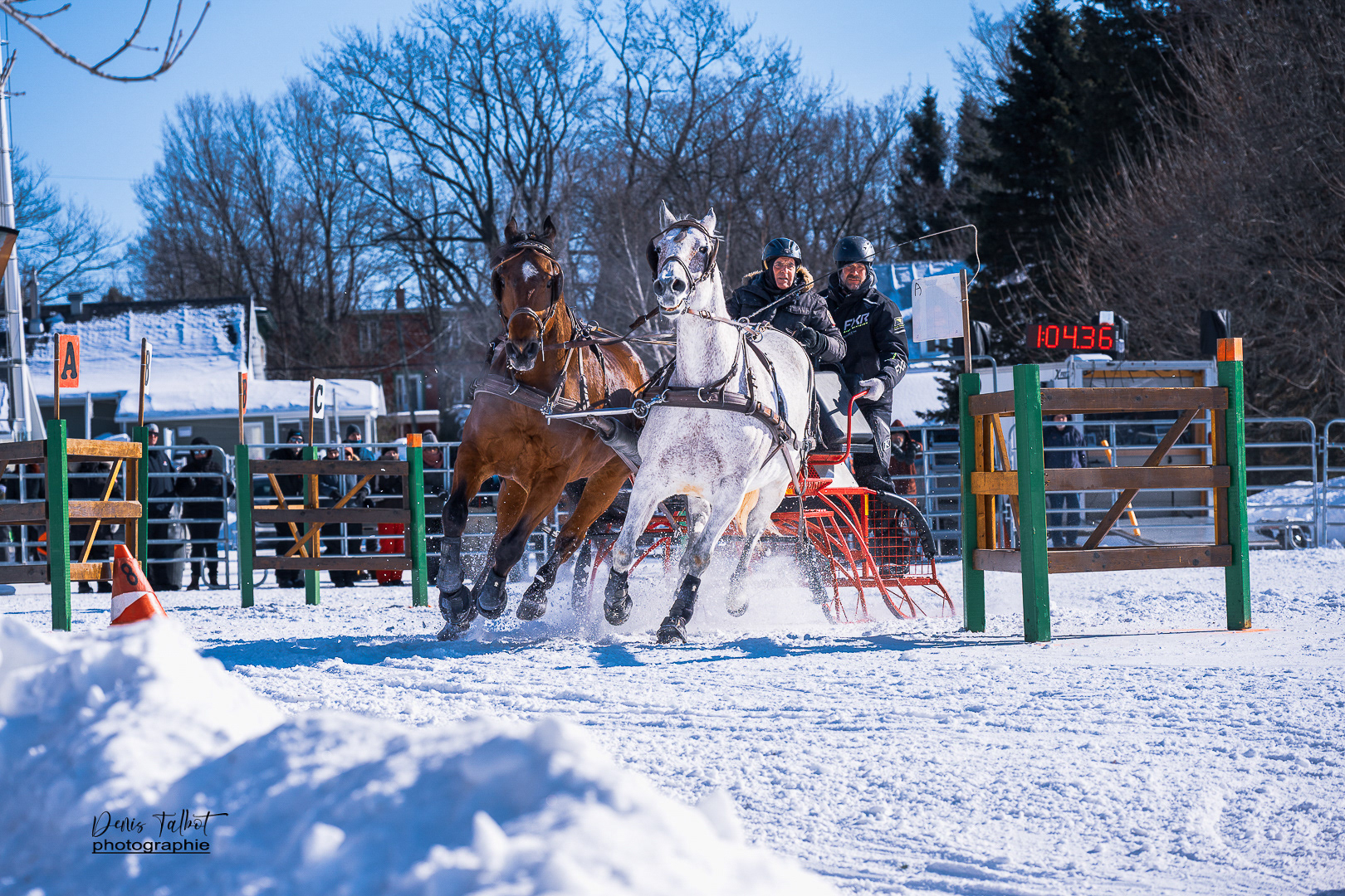 Discipline où un meneur doit faire courir un équipage de chevaux sur un parcours d'obstacles prédéterminés dans le meilleur temps possible. Elle est composée de deux rondes de qualifications et d'un barrage (Source: www.ladaq.com)